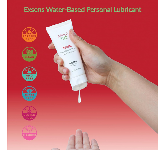 • Number of Items: 1Exsens Water-Based Lubricant with Apple Martini flavor enhances intimate moments while maintaining your pH balance. The non-sticky, long-lasting formula is easy to clean and safe for use with condoms and toys. Made with natural ingredients, free from parabens and GMOs for a smooth, hydrating experience.