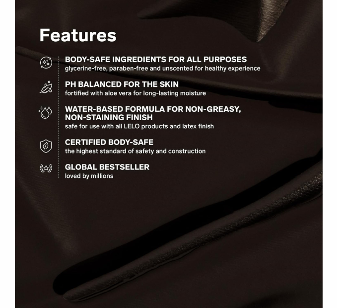 • Material Feature: Natural, Organic, Water Based, Fragrance FreeThis water-based personal moisturizer by LELO is designed to enhance intimate moments with a luxurious, gel-like texture. Its natural, organic formula is perfect for sensitive skin, providing long-lasting moisture and comfort without fragrances or parabens. Ideal for both solo and partnered use.