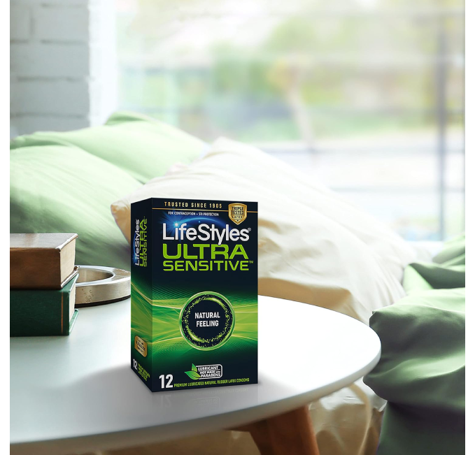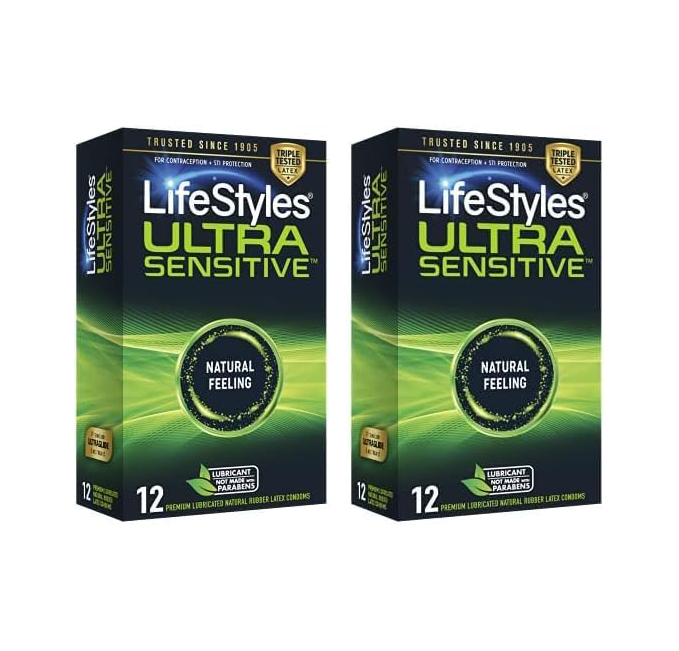 LifeStyles Ultra Sensitive Natural Feeling Lubricated Latex Condoms, 12 Count (Pack of 2) offer a high-quality experience with a smooth, natural feel. Designed to enhance comfort, these latex condoms are lubricated for a seamless fit and easy use. Made from premium rubber, they ensure reliable protection while maximizing sensitivity. Ideal for individuals seeking dependable, safe, and pleasurable intimate moments.